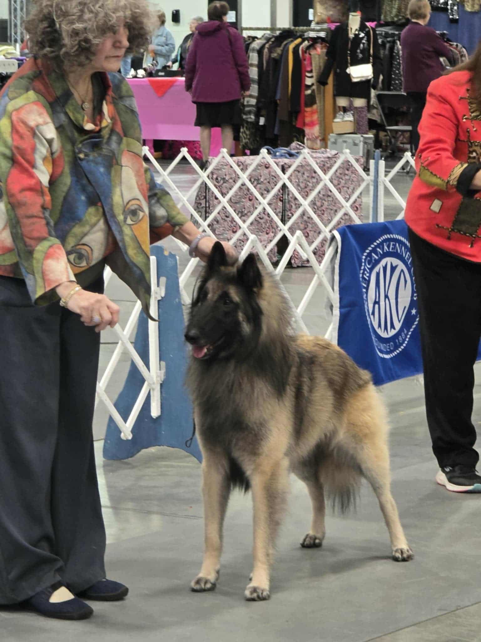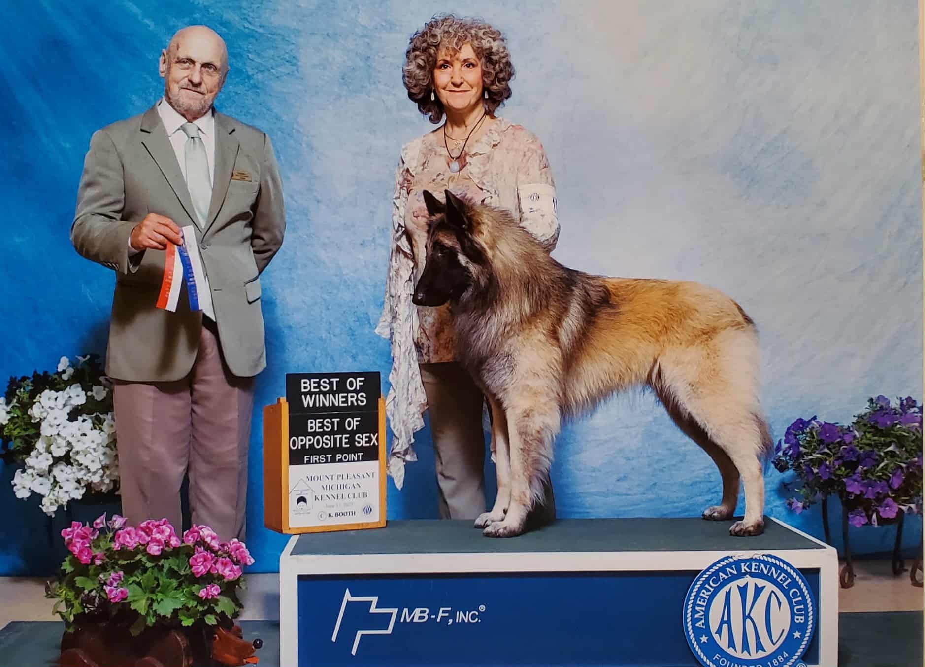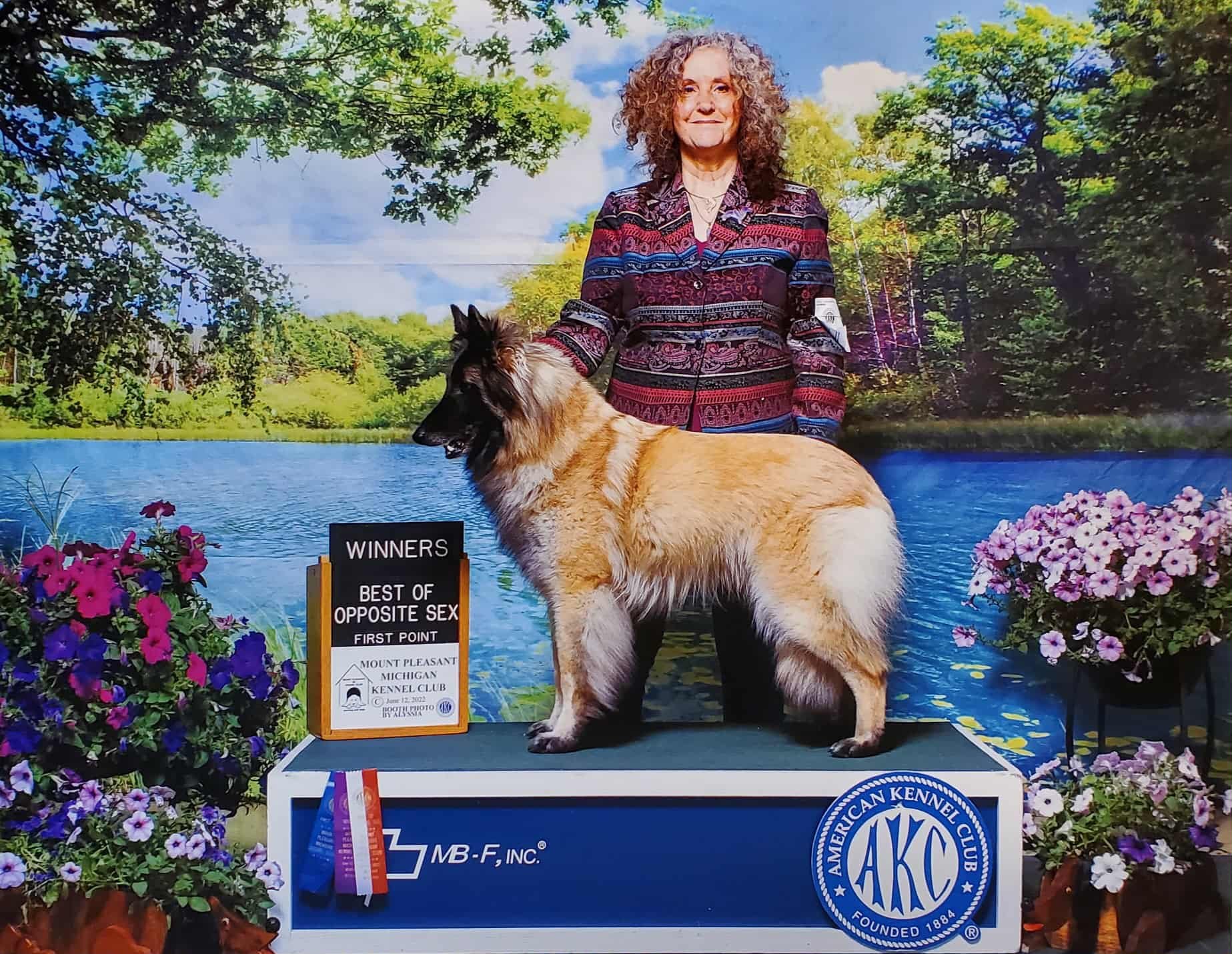Ch Winjammer’s Nou Adventure Fame is the littermate to Fury. They were the only offspring of Pat Morgan’s girl Gentile. Fame belonged to Becky Burgess, and came to me after Becky’s passing. Fame produced great litter for Bon Chien, with Rokhie as the sire. This was the “River” litter. Through her daughter Delta, she continues to have a very large pawprint on the current breeding at Bon Chien. Fame and Fury hang out together and watch their children, grandkids and great-grandkids play and grow. She has many advanced nosework titles in both the UKC and AKC. Famous Burgess, as she is often called, is a petite bitch with profuse coat, wonderful movement and a sweet loving disposition. She was also a fantastic mom.